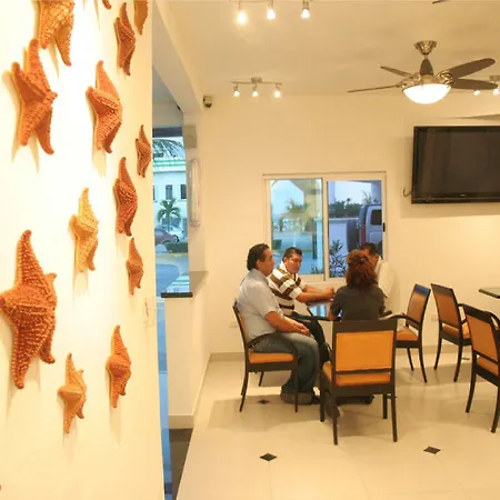 Torre Escénica ist in ca. 15 Minuten mit dem Auto erreichbar. Das Del Sol befindet sich im Bezirk Puerto Juarez von Cancún, in circa 600 Meter Entfernung vom Strand Playa El Nino. El Meco ist in etwa 25 Gehminuten Entfernung von der Unterkunft. Die Bushaltestelle Puerto Juarez liegt in unmittelbarer Nähe vom Hotel.